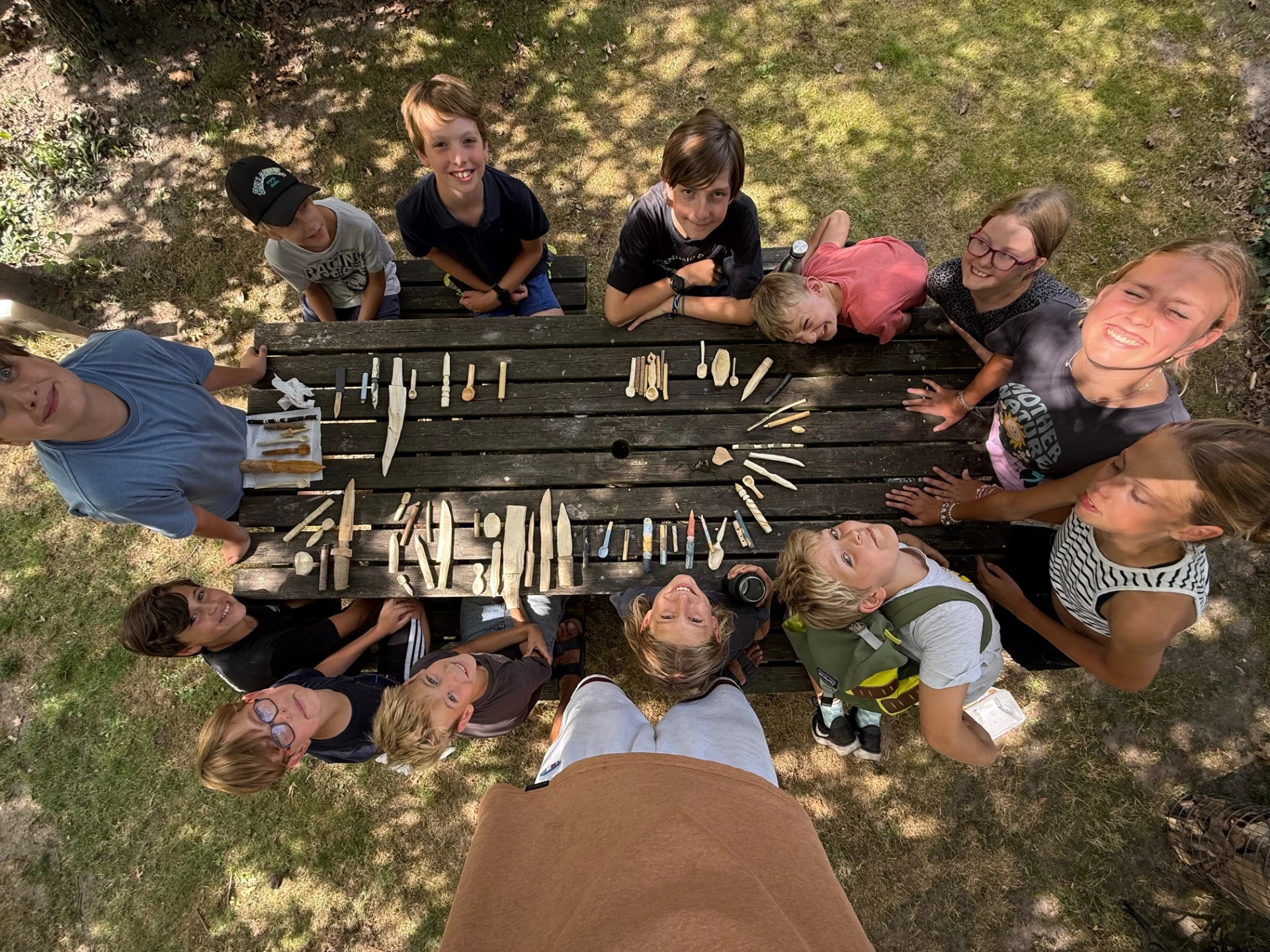 zullen er verschillende werkjes maken uit takken en stammen vers hout -