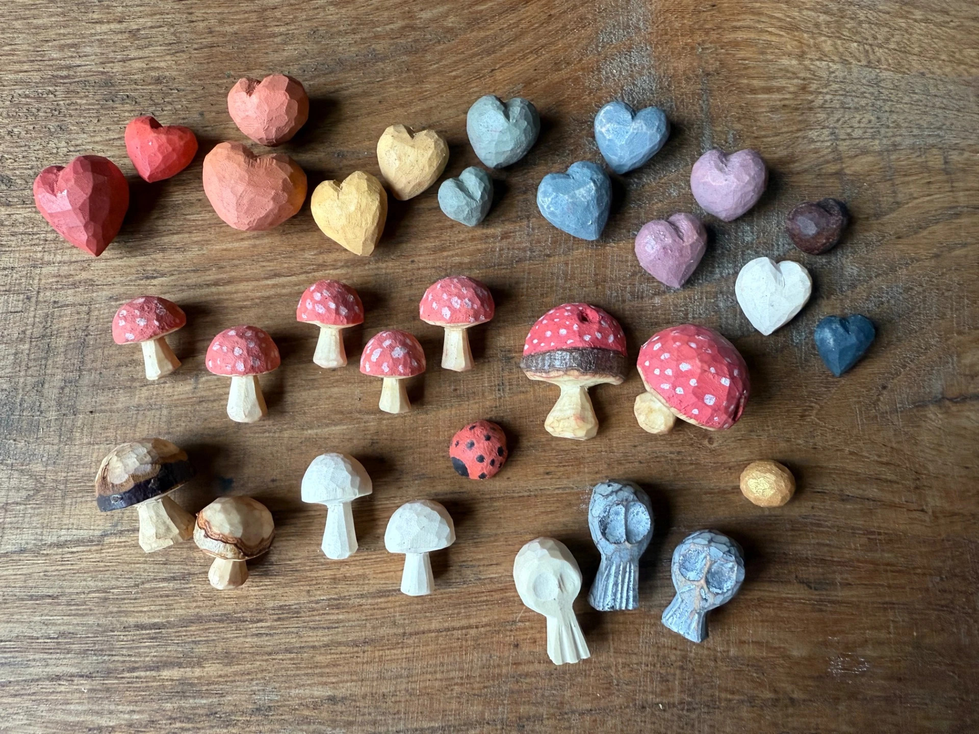 onder andere lepels, messen, paddestoelen, toverstaffen, kapstokjes.. Ze