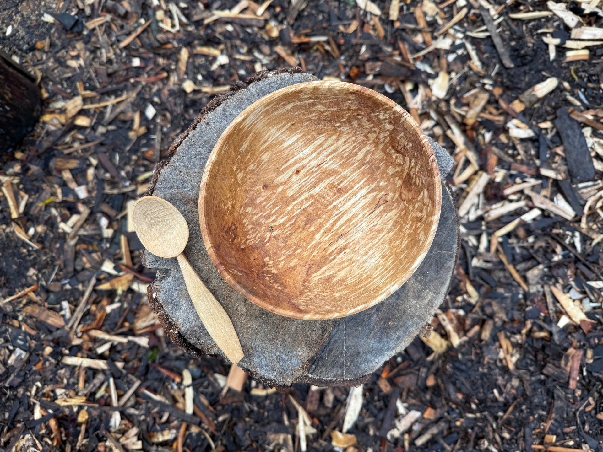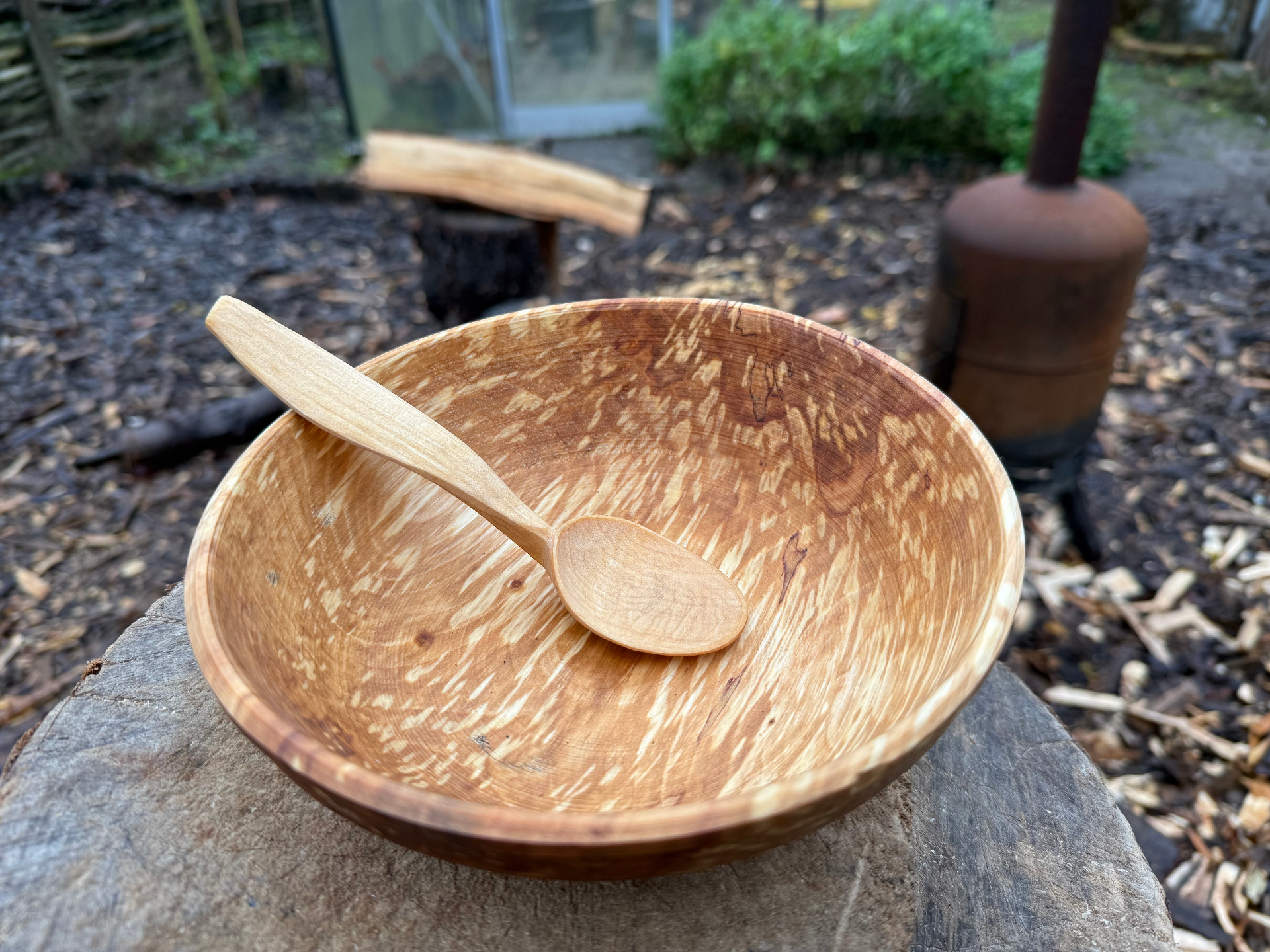 Op de andere dag leer je bij Thomas (Meneertje Teelepel) je eigen eetlepel te snijden uit een stam, met een bijl en enkele houtsnijmessen.