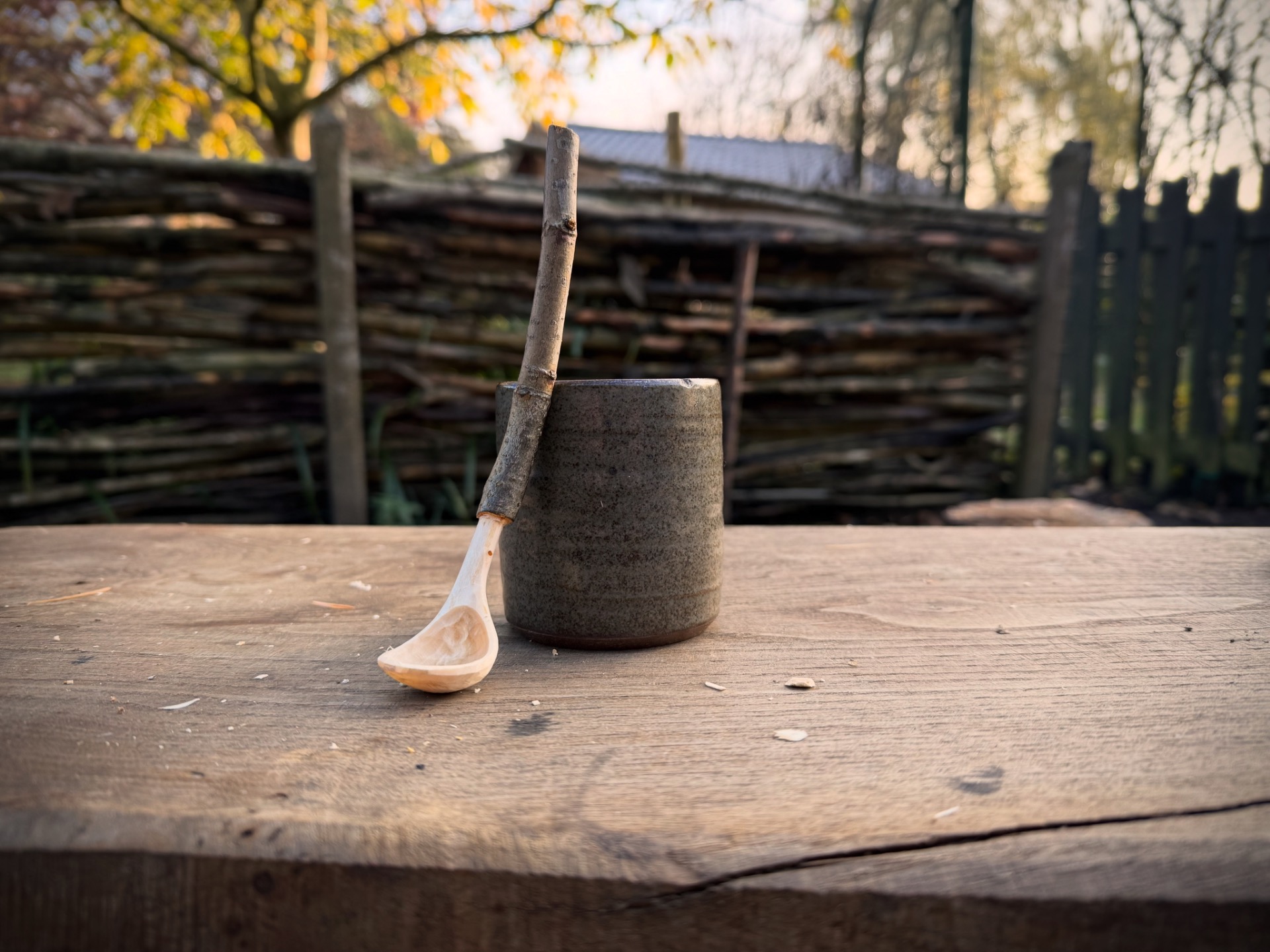 Een takkenlepeltje kan je maken uit kleine twijgjes die makkelijk vindbaar zijn in het bos. Je hebt er zo goed als geen bijlwerk aan en kan ze dus volledig met de messen maken! Ik leer jullie op deze dag graag alle trukjes om het juiste hout te vinden en de juiste mestechnieken te gebruiken.